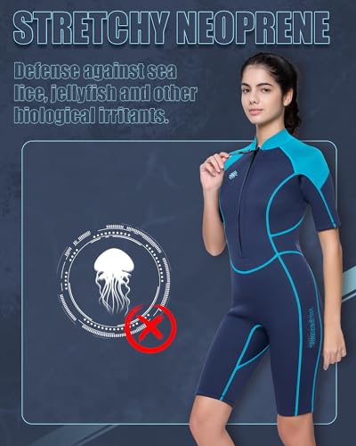 Jsnorklet Womens Wetsuit Shorty, 3mm Front Zipper Neoprene Diving Suits for Diving Snorkeling Surfing Swimming
