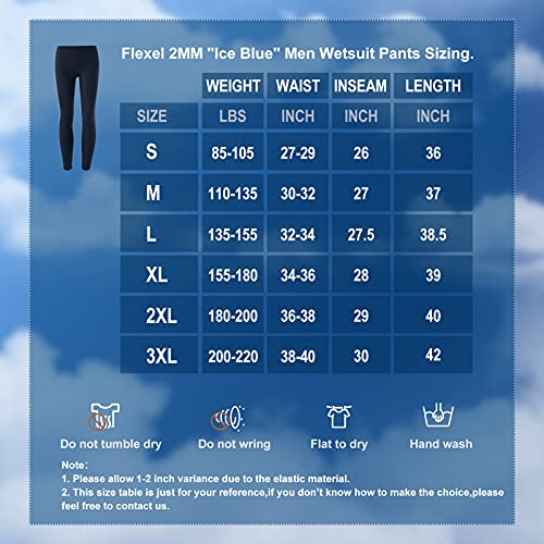 Flexel Wetsuit Pants Men, 2mm Neoprene Pants Men Keep Warm in Cold Water Wet Suit Bottoms for Surfing Pants Long Diving Thermal(Ice Blue, M), Medium