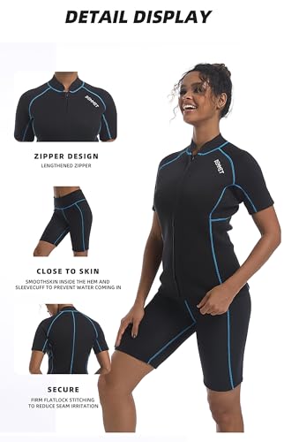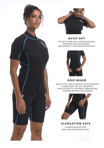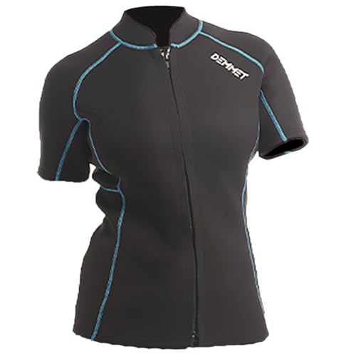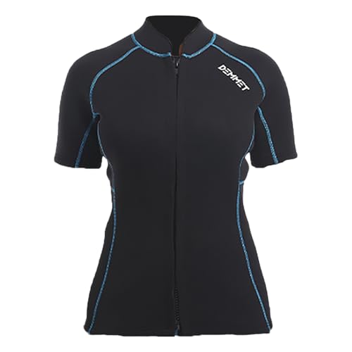 DEMMET Wetsuit Top Short Sleeve 1.5mm/3mm Neoprene Shorts Wetsuit Jacket Men Women High Stretch Wetsuit Couple’s Front Zip Wetsuit Swim Dive Snorkeling Surf Kayak Canoe