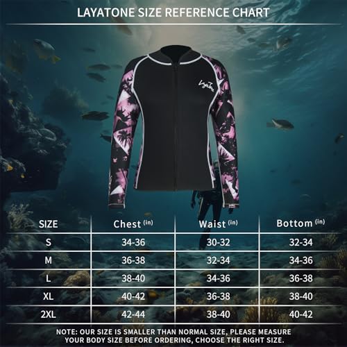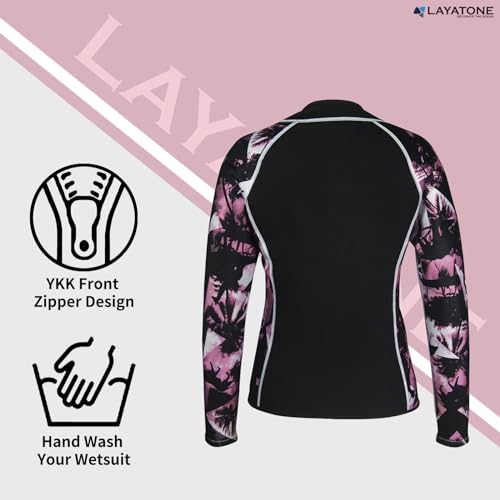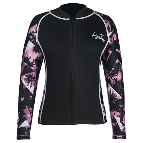LayaTone Womens Wetsuit Top 3mm Wetsuits Jacket Long Sleeve Neoprene Shirt, Warm Wet Suit Tops, Front Zipper Swimsuit for Cold Water Swim, Diving, Surfing & Water Aerobics, Comfort Warm
