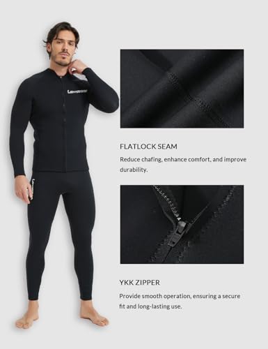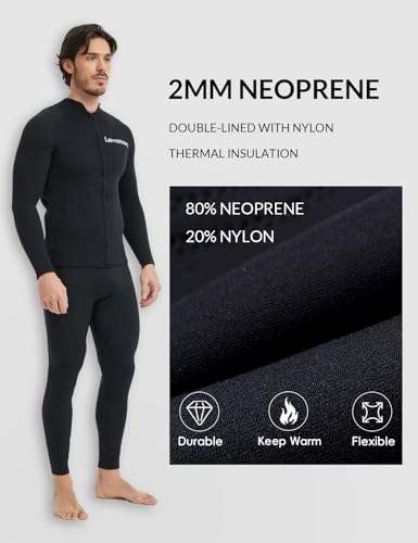 Lemorecn Wetsuit Top Men 3mm and 2mm Wetsuit Jacket Neoprene Long Sleeve for Water Sports
