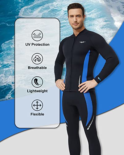 Seaskin mens wetsuit tops is specially designed for water sports and water aerobics; wetsuit front zip provides UV protection and defense against sea lice, jellies and other biological irritants.