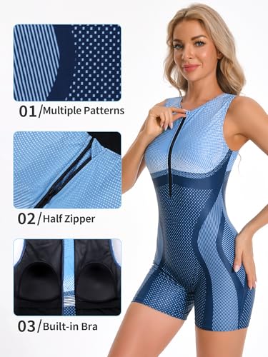 ATTRACO Boyleg One Piece Swimsuits for Women Athletic Bathing Suits Color Block Zip Up Swimwear