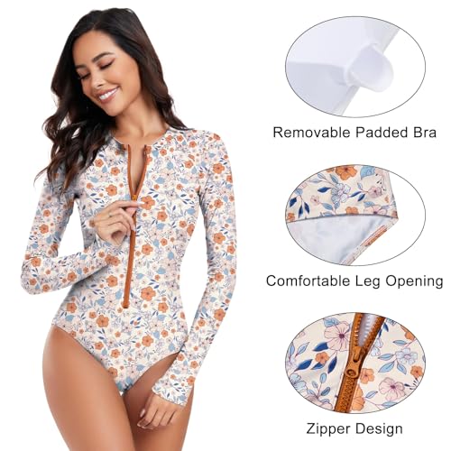 Century Star Long Sleeve Swimsuits for Women Rash Guard UPF 50+ Modest One Piece Surfing Full Coverage Bathing Suit Swimwear