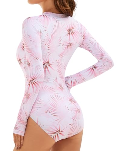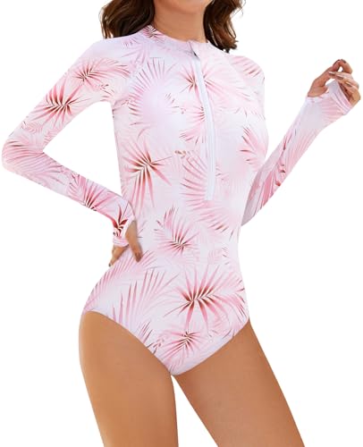 DMSWST Women’s Long Sleeve Swimsuit One Piece Rash Guard UV Protection Bathing Suit Printed Surfing