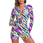 ATTRACO Women's Boyleg One Piece Swimsuit Polka Dot Athletic Bathing Suit Zip Swimwear Color Block