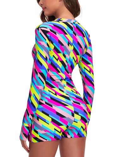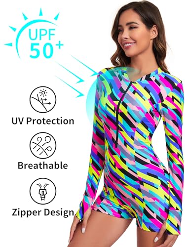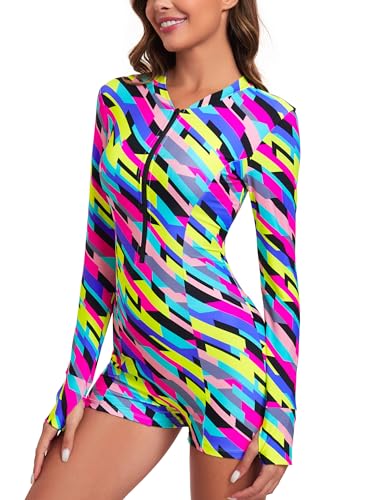 Ocean Blues Women’s Long Sleeve One Piece Bathing Suit Athletic Boyleg One Piece Swimsuit UPF 50+ Sun Protection Rash Guard