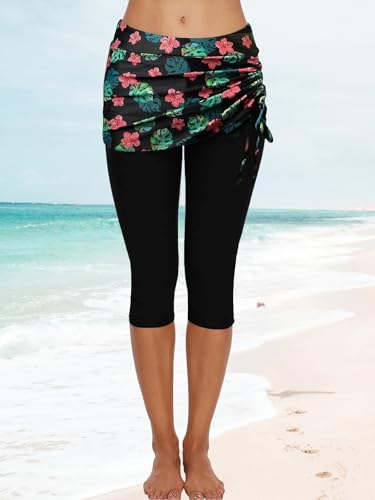 ECUPPER Womens Swim Shorts Capris Swimming Leggings Boardshorts Stretch High Waist Swimsuit Pants for Beach Surf