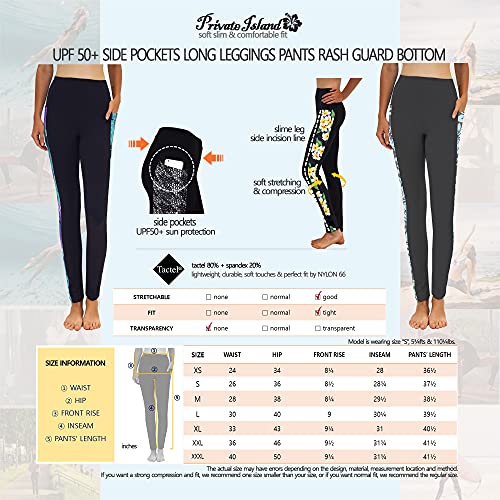 Private Island Women UPF 50+ Side Pockets Long Leggings Pants Swim Beach Swimsuit Rash Guard Bathing Bottom (RLLP-RMLPP)