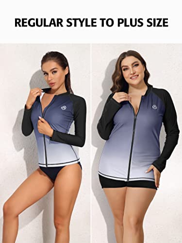 ATTRACO Women’s Long Sleeve Rash Guard UV Sun Protection Zipper Gradient Swimsuit Top